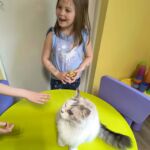 Tym razem byłyśmy z Natalią w Zgierzu, na samym końcu miasta w sumie. Pracowała Kobra, sfinksica i ragdoll Laluś. Oba koty zjawiskowe, bajkowe, nietypowe. Oba grzeczne, miłe, aktywne. Spotkanie upłynęło w serdecznej atmosferze. Dzieci, rzecz jasna, były przeszczęśliwe, nauczycielki także, szalenie miło i serdecznie przyjęła nas pani dyrektor. Kociary empatyczne, pomocne, współpracujące. Odnośnie zbiórki karmy powiem dyplomatycznie, że mogło być więcej, ale mając na uwadze, że to było nasze pierwsze spotkanie, damy tej społeczności jeszcze jedną szansę.
